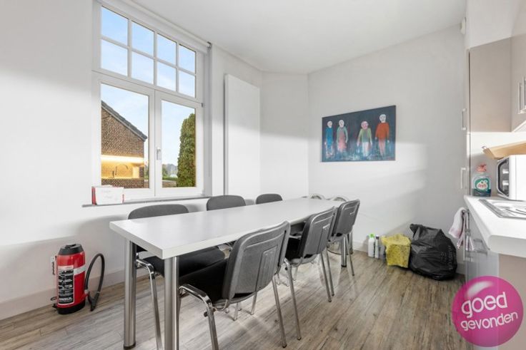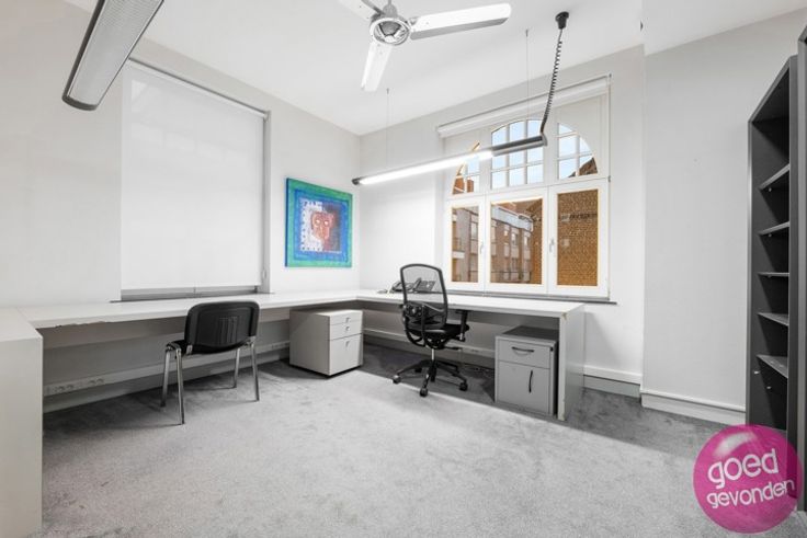 KANTOOR MET UITSTRALING - Ontvang klanten en personeel in een uniek decor dat aan uw onderneming het nodige cachet geeft en een onvergetelijke indruk achterlaat. Thans voorzien van 12 ingerichte kantoorruimten goed voor een capaciteit van 20+ pers., 2 archiefruimten, keuken en wachtzaal. GERENOVEERD 2008. Wat betreft elektriciteit, sanitair, verwarmingsinstallatie, ramen, deuren, isolatie van daken en buitenmuren hoeft u zich geen zorgen meer te maken. Ook alle kantoorvoorzieningen zijn er. GEEN RENOVATIEPLICHT EPC label B. Overal nieuwe ramen met dubbele glas + alle daken volledig geïsoleerd + buitenmuren geïsoleerd via spouwen + hoge rendementsketel. INTERBELLUM - In de lijn van de verwachtingen vindt u hier de sfeer terug die getuigt van de eerste helft van de 20ste eeuw met vele authentieke elementen. Mozaïek- en parketvloeren, sierschouwen, hoge plafonds en een uitzonderlijk mooie wisselwerking tussen de geveldecoratie en de hoogstaand gerenoveerde ramen, deuren en erker. PRIVE-PARKING langs de woning, via een automatisch hekwerk, plaats voor 3 of meer wagens. INDELING. Ruime inkomhal die doorloopt tot deur naar terras + aparte wc + 6 kantoren gelijkvloers + inrit, parking, terras en tuin + hal, 4 kantoren, keuken, vestiaire en wc op de 1ste verdiep + hal, 2 kantoren en 2 archiefruimten op 2de verdiep + droge kelder van 50 m². Info 012 744 844 of info@goed-gevonden.be