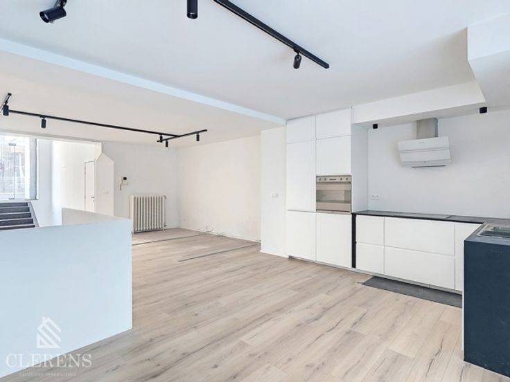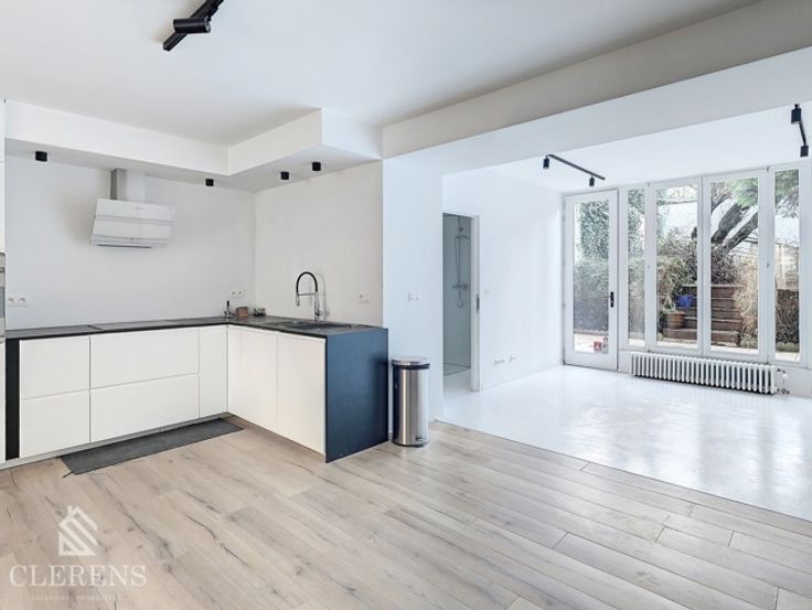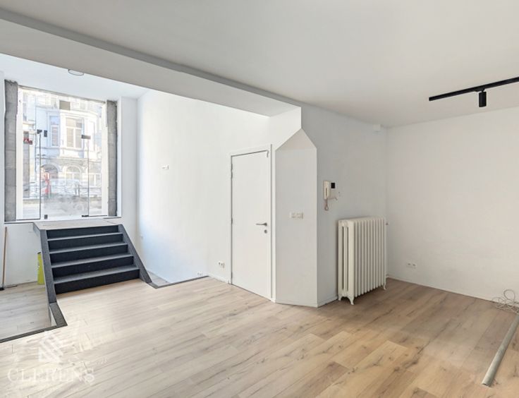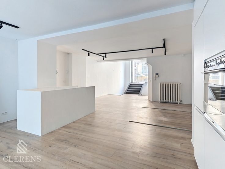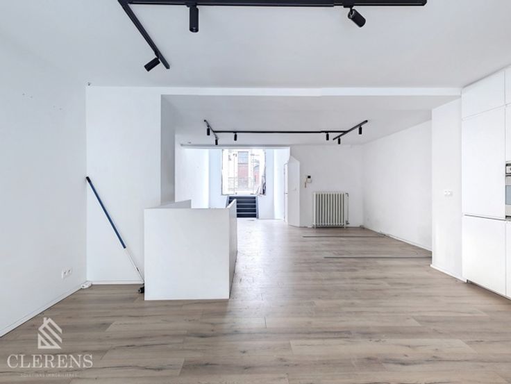 BRUGMANN/MOLIERE, Quartier Place Brugmann, Au rdc et -1 d'un très bel immeuble datant du début du XXème, espace professionnel en très bon état ( rénové en 2023/2024) de +- 110m² comprenant : une belle entrée avec grande baie vitrée, un espace de 65m² avec cuisine super-équipée ( frigo, congélateur, taques, lave-vaisselle, hotte et four), une seconde partie de 15m² donnant vers le jardin, une salle de douche avec WC. Terrasse de 20m² et jardin de 34m² (Ouest) avec prise électrique et arrivée d'eau.