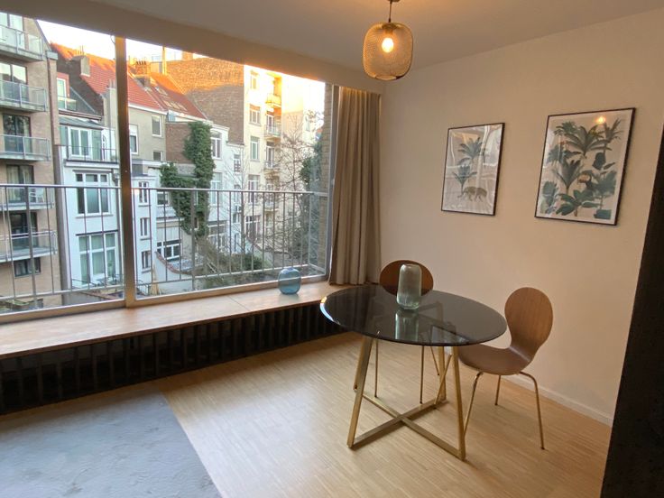 Op steenworp afstand van de Europese instellingen, mooie en lichte studio (volledig) smaakvol ingericht. Grote erker, slaapkamer gescheiden door een alkoof en ingerichte keuken. Doucheruimte met wasmachine. Borden, lakens en handdoeken inbegrepen.