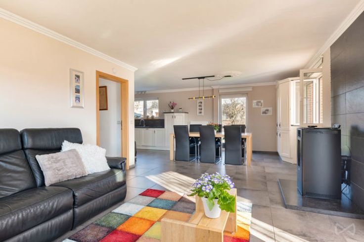 In een rustige, doodlopende straat met directe toegang tot de velden, maar toch vlak bij het bruisende centrum van Haasrode, vindt u deze vrijstaande, energiezuinige woning. Een ideale combinatie van rust, groen en een uitstekende bereikbaarheid! De woning beschikt over drie ruime slaapkamers en een lichtrijke leefruimte die naadloos overloopt in een gezellige veranda, perfect om het hele jaar door van het buitengevoel te genieten. De vernieuwde open keuken is volledig uitgerust en vormt het hart van het huis. Verder is er een ruime garage en een carport, ideaal voor het overdekt stallen van een mobilhome, busje of grote wagen. Doorheen de jaren werden verschillende renovaties uitgevoerd: alle ramen werden vernieuwd, de vloeren op het gelijkvloers zijn vervangen, er werd een automatische sectionaalpoort geplaatst, een nieuwe condenserende gaswandketel geïnstalleerd en de badkamer werd volledig vernieuwd. Dankzij deze moderniseringen is de woning helemaal instapklaar en voorzien van alle hedendaags comfort. Dankzij de aanwezige zonnepanelen met thuisbatterij geniet u bovendien van lagere energiekosten en een duurzame toekomst. De volledig omringende tuin zorgt voor een prachtig groen uitzicht en optimale privacy. De locatie is een absolute troef: op wandelafstand vindt u supermarkten zoals Aldi en Spar, een drankenhandel en diverse scholen. Daarnaast zijn het industriepark van Haasrode, Leuven-centrum en de E40 vlot bereikbaar.