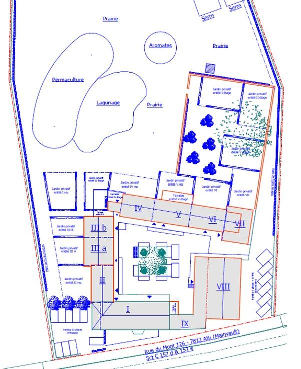 Les bâtiments : Permis d’urbanisme obtenu pour 12 logements. Il y a actuellement un rez de 100m2 habitable, un loft de 150 m2 qui est « casco », habitable mais travaux de petit œuvre et d’isolation à faire, une maison avec un rez de chaussé (+/-65m2) et un loft (+/-80m2) tout les deux habitables mais nécessitant aussi quelques travaux, deux maisons passives de 3 chambres en gros œuvre fermé, une étable où 5 logements (4 appartements et 1 maison) peuvent être construits et encore une maison 2 ou 3 chambres à bâtir. Très grande grange pouvant être aménagée