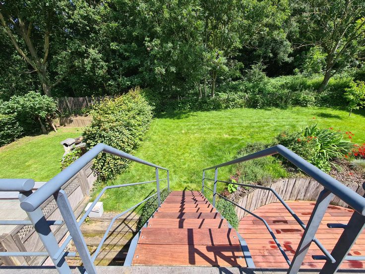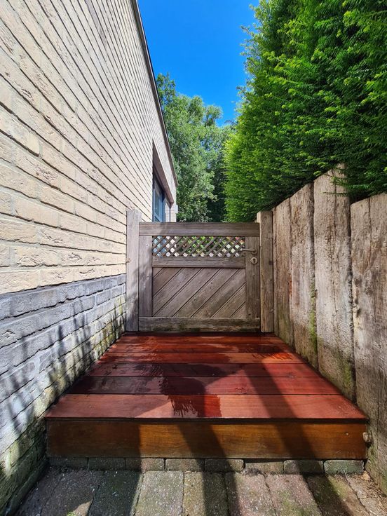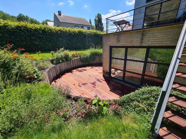 Prachtig terras en privétuin met kruiden en volwassen bomen