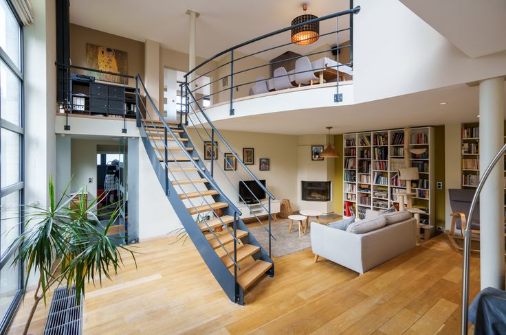 Riante, lichte woonkamer met gezellige open haard