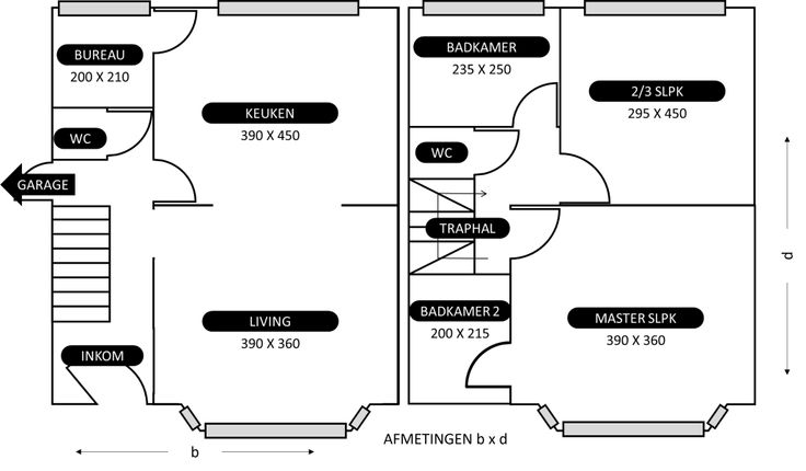 Huis met garage als casco aangeboden opdat de koper het zelf naar smaak verder inricht.