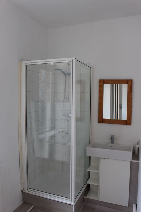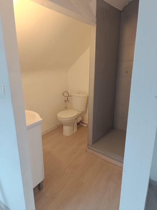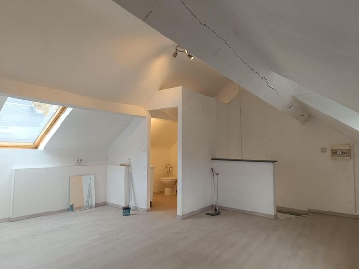 Au 1er étage, il est composé d'une chambre, d'une sdd avec wc et d'une cuisine ouverte sur la pièce de vie. La cuisine est semi-équipée (hotte, taque vitro, combi frigo/congélateur). Pas d'extérieur.
