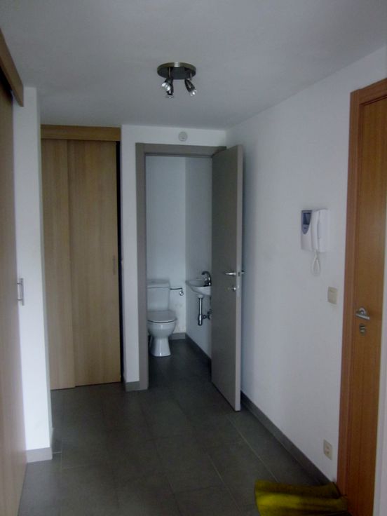 Superbe appartement plein sud, 1 chambre avec cuisine super équipée (frigo, lave-vaisselles, taque cuisson, four). Dans centre d'Ecaussinnes, proximité immédiate des commerces, gare et axes routiers E19 (Bxl - Mons) et E42 (Namur - Liège). Garage privé au sous-sol et cave inclus dans la location.