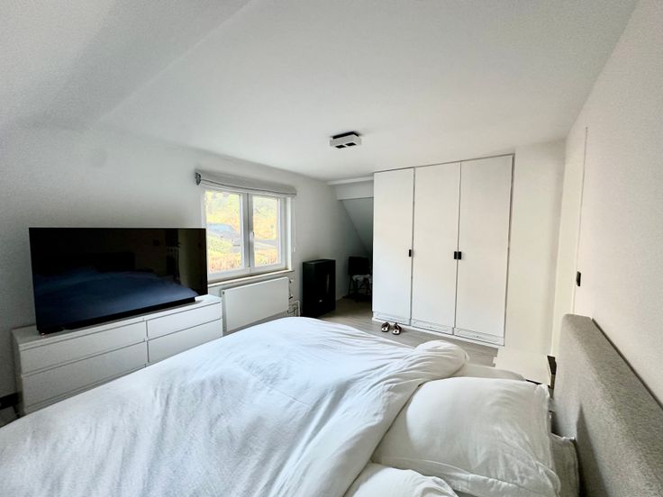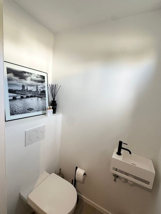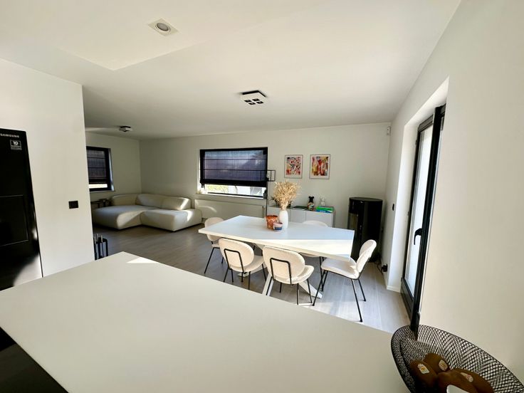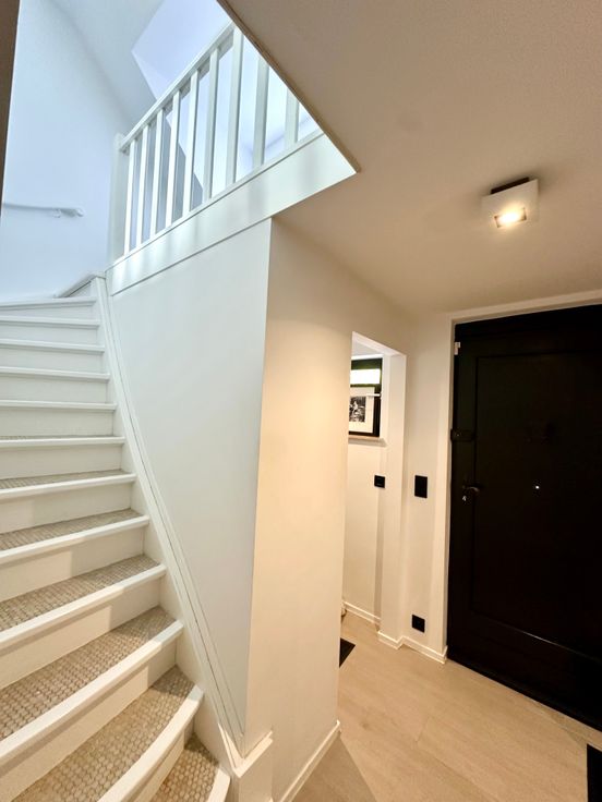 Entièrement rénovée en 2022, elle se compose comme, suit : Hall d'entrée, vestiaire, WC invité, cuisine ouverte, sàm et salon avec bibliothèque/meuble sur mesure.