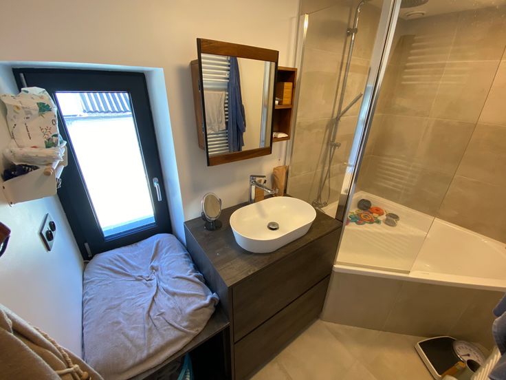 - Aménagements : Meubles sur mesure dans la salle de bain et le salon (+ bureau intégré pour homeworking)