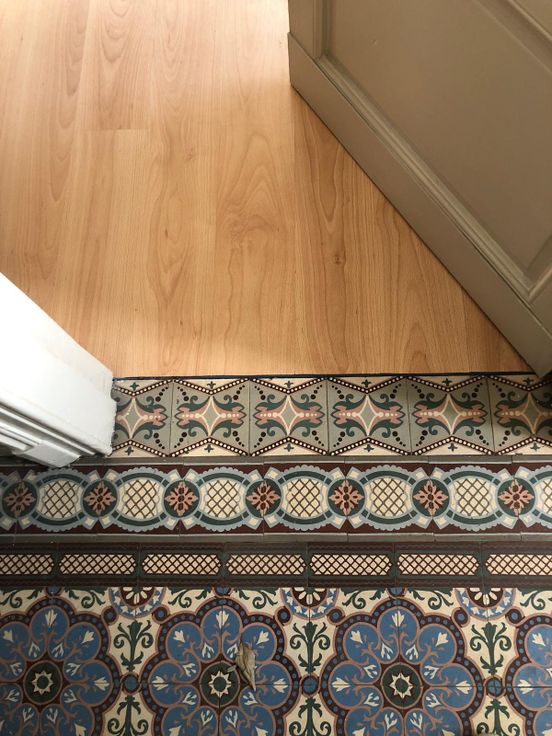 Gelijkvloers: Inkomhal met authentieke tegelvloer, 2-delige woonkamer, keuken, apart toilet en zonnig terras.