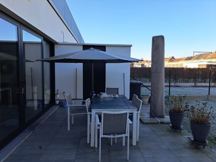 Zeer mooi en ruim appartement 2 slaapkamers en een bureel ,voorzien van alle comfort, mooie tuin en zeer ruim terras. Garage en oprit met meerdere staanplaatsen. Geen huisdieren toegelaten .