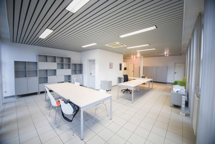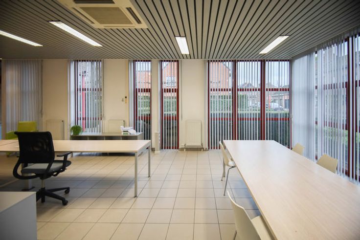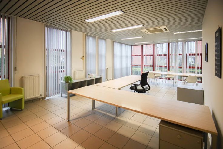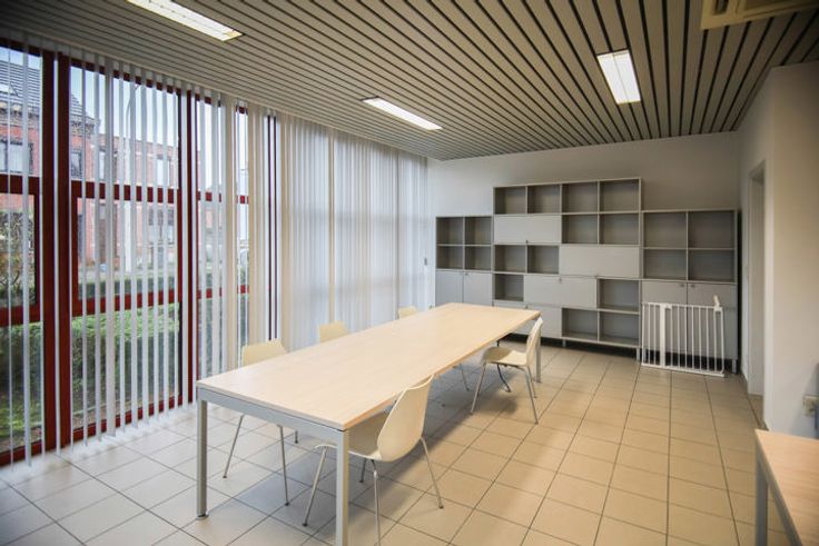 De ruimte is als volgt ingericht : inkomhal, lichtrijke open space office met kitchenette en sanitaire ruimte. Kelderberging aanwezig.