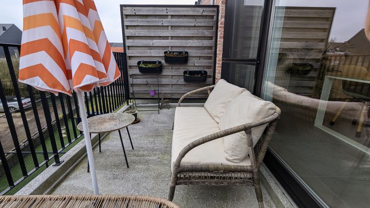 Het terras met een oppervlakte van 8 vierkante meter heeft een westelijke oriëntatie. Doordat het uit de achtergevel van het gebouw steekt kan je zowel van de middag- als van de namiddag zon genieten. Door middel van een afscheiding, en de positie in de gevel, is er voldoende privacy.
