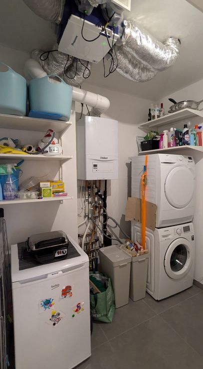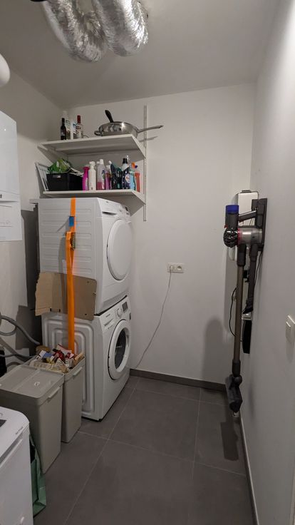 Het toilet is toegankelijk via de gang/inkom. De bergruimte bevindt zich achter de keuken en is ruim genoeg voor het plaatsen van een diepvriezer, wasmachine, droogkast, stofzuiger, opbergruimte, ...