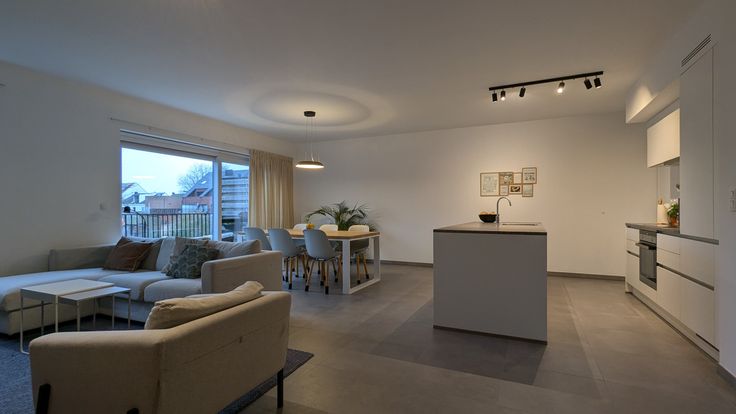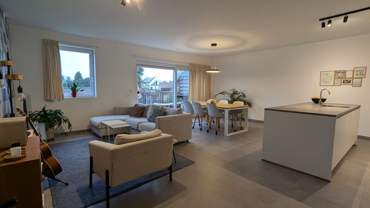 De leefruimte heeft een westelijke oriëntatie en krijgt zonlicht doorheen de ganse namiddag en valavond.