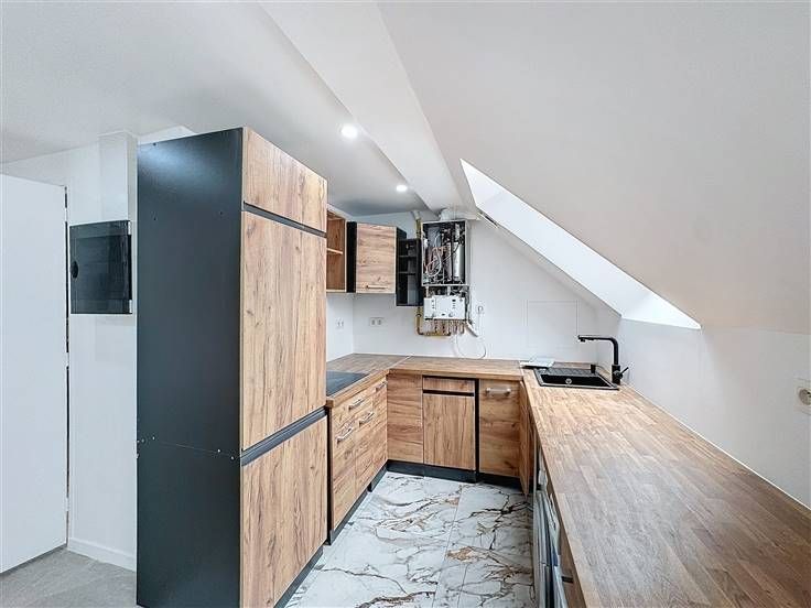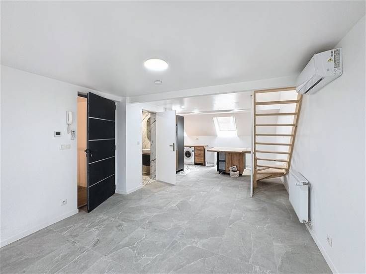 Quartier Flagey - Schitterend duplex appartement met 1 slaapkamer en terras van +/- 82m² gelegen op de 3e verdieping van een gebouw van 4 verdiepingen bestaande uit: een grote lichte woonkamer met een super ingerichte open keuken van +/- 44m² (koelkast, vaatwasser, gasfornuis en afzuigkap), een slaapkamer van +/- 20m², een douchekamer met toilet en een terras van +/- 15m², dubbele beglazing, wasmachine, telefoon, airconditioning - Bijkomende kosten: €100/maand (koud water, elektriciteit en onderhoud van gemeenschappelijke ruimtes) - Beschikbaar per direct