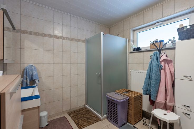 Ook op de gelijkvloerse verdieping is er een badkamer met inloopdouche, ideaal voor wanneer u geen trappen meer wenst te nemen.