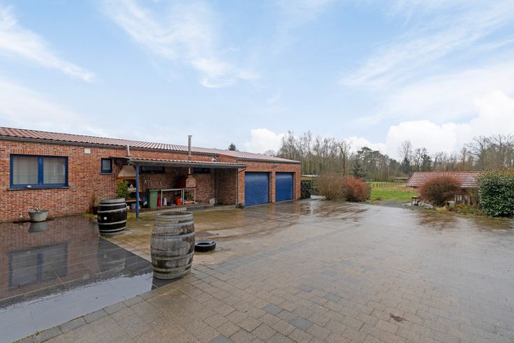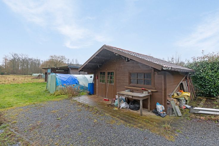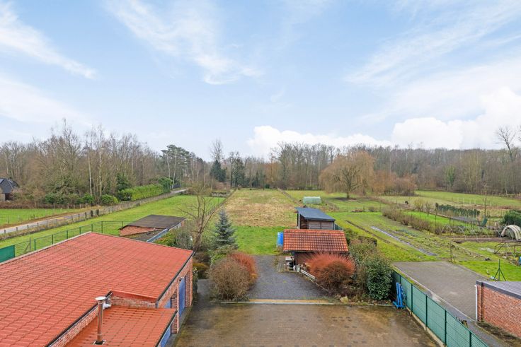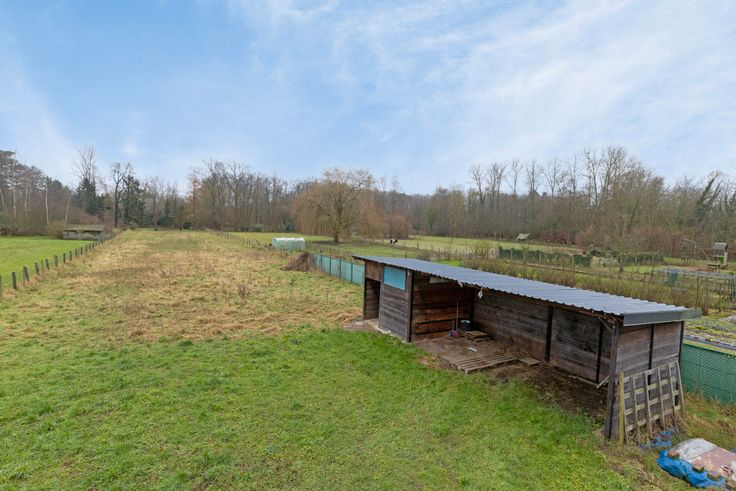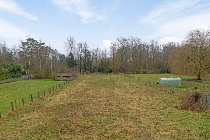 Zéér ruime tuin met tuinhuis, paardenweiland + recent gebouwde stallen.