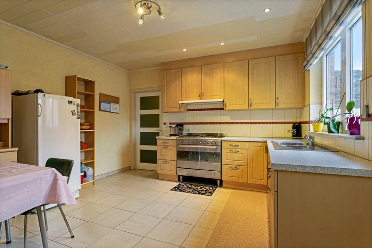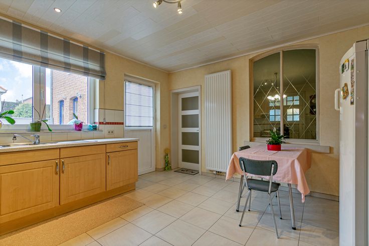 Op de gelijkvloerse verdieping zijn de 2 ruime keukens gelegen met elk een eigen bergruimte.