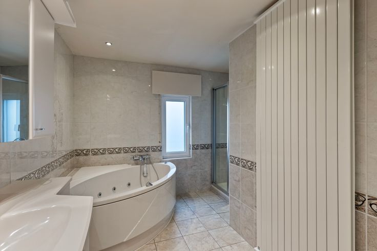 De tweede badkamer beschikt over een dubbele wastafel, douche en ruim ligbad met jacuzzi jets.