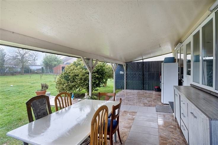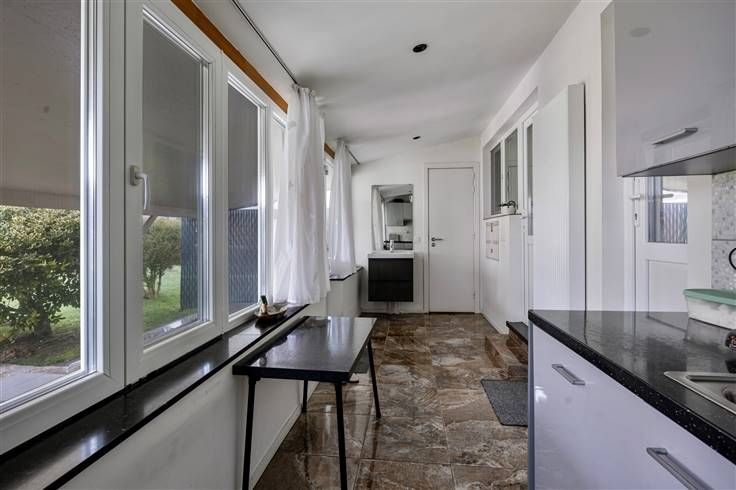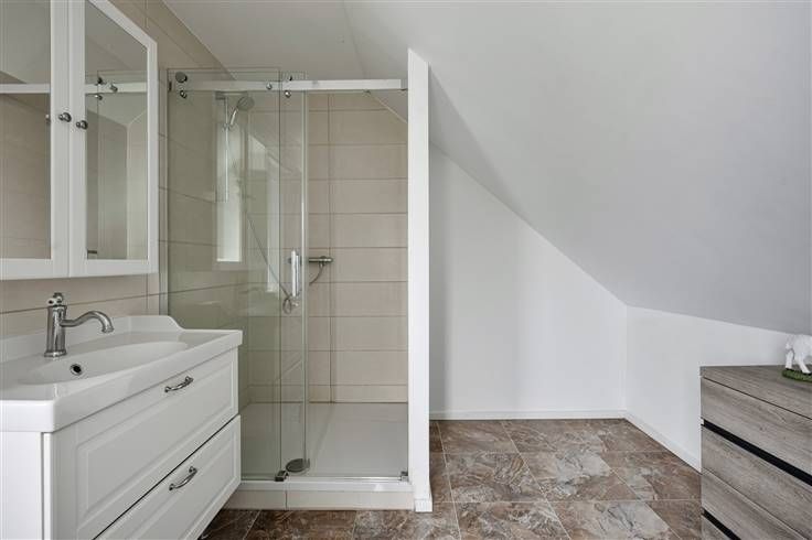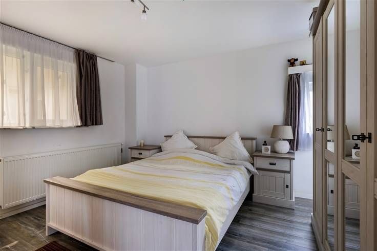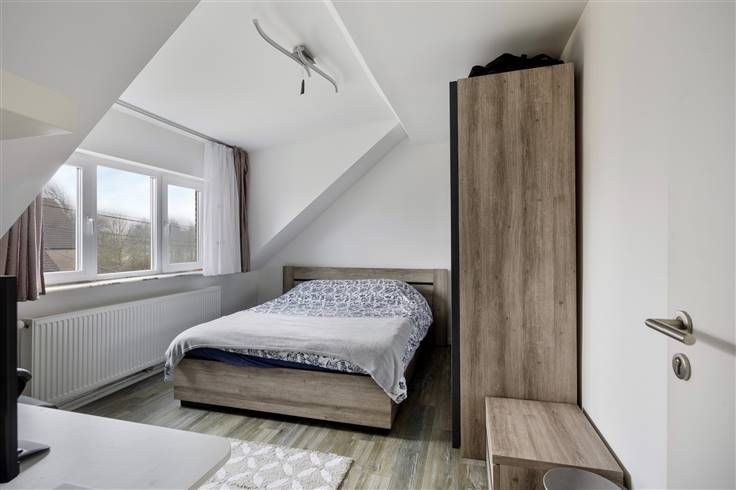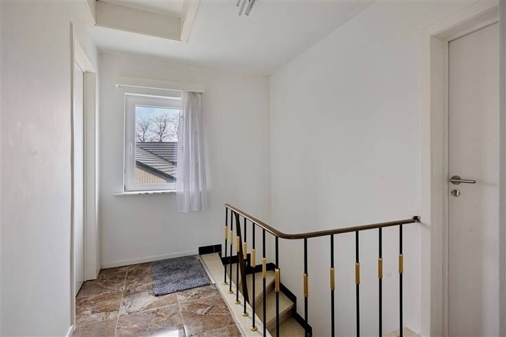 Verzorgde woning bwj. 1965 (type villastijl met inpandige garage) met 4 grote slpk.. Op breed, zuidwest-gericht perceel van 10a82ca, grenzend aan agrarisch gebied. Vernieuwd in 2018 (isolatie dak, nieuwe ramen met driedubbele beglazing, elektrische installatie conform, vernieuwde keuken, radiatoren en installatie,vloeren, badkamer enz.). Door de werken is de energiescore 320, wat overeenkomt met label D, maar tevens wil zeggen dat met kleine ingrepen label C of zelfs B makkelijk haalbaar is. Sowieso valt de woning niet onder de renovatieplicht. De woning omvat een grote inkomhal met plaats voor een inbouwkast, een lichtrijke leefruimte, een keuken met zicht op de tuin, en een gastentoilet op het gelijkvloers. Op het gelijkvloers zijn er tevens een grote slpk. en een douchecel aanwezig. Boven zijn er een mooi ingerichte badkamer (douche, meubel, en nachttoilet) en 3 grote slpk. (3x voor dubbel bed, laminaat en cv in elke kamer). Er is een inpandige garage, waar ook plaats is voor fietsen en een wasplaats + voorraadkelder. De verwarming wordt geleverd door een recente, condenserende stookolieketel. Extra troef is het toffe overdekte terras met buitenkeuken. Met voldoende parkeergelegenheid op het terrein (minstens 3 wagens) . Centraal maar rustiger gelegen, op een boogscheut van de E 314. Verdere detailinfo en meerdere foto's via www.lissens.be