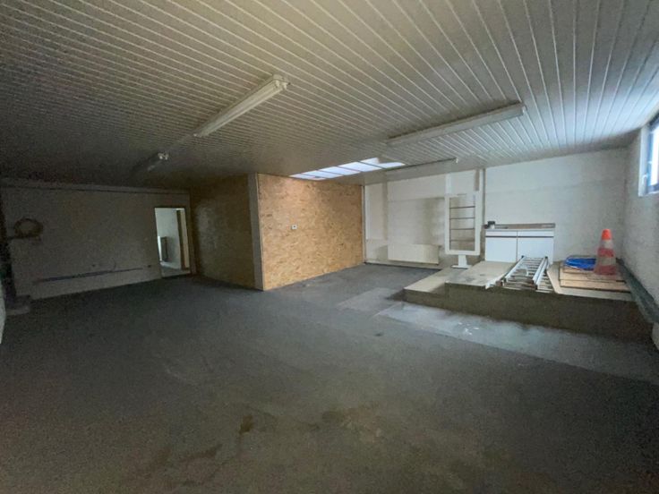 Le premier local commerciale se compose d'une vaste pièce ouverte d'environ 140 m², ainsi que d'une kitchenette, un bureau, un WC séparé, d'un local technique, d'une cave et d'un garage.