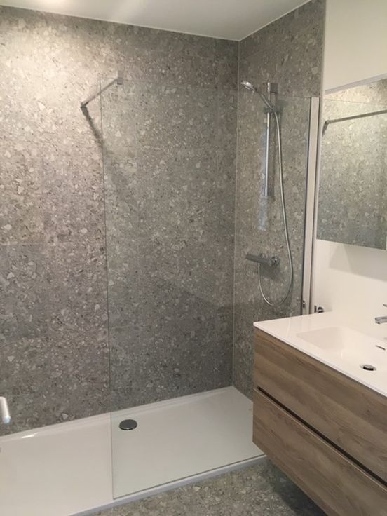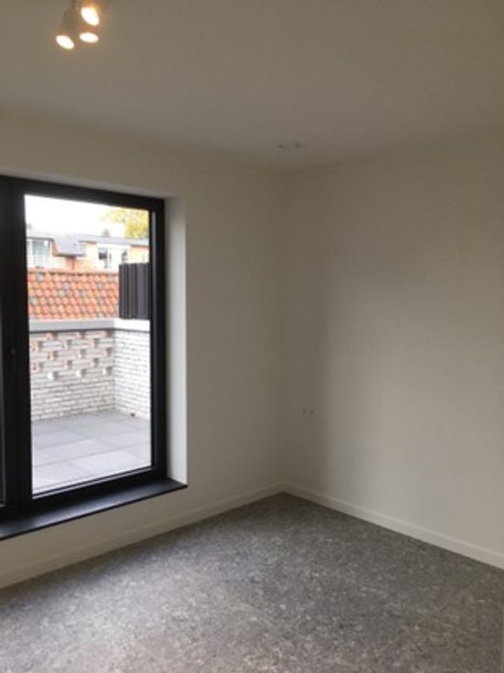 De ruime slaapkamer met ingebouwde kasten heeft eveneens toegang tot het terras. De badkamer is voorzien van een lavabomeubel en inloopdouche. Vanuit de keuken is er toegang tot de naastgelegen berging met voorzieningen voor technieken en wasmachine/droogkast.