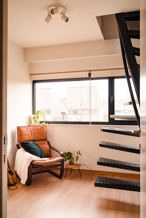 Deze energiezuinige woning (EPC A) met 4 slaapkamers, gebouwd in 2013, volledig afgewerkt, instapklaar, en voorzien van 13 zonnepanelen en thuisbatterij, is gelegen in het door Crepain Binst ontworpen woonerf ‘Steenovenbos’. Op het gelijkvloers bevindt zich een ruime inkomhal, voorzien van toilet en ingebouwde vestiairekast, een ruime woonkamer, mooie open keuken en grote berging. De woonkamer is voorzien van massief eiken parket en vloerverwarming, en heeft zicht op de groene tuin. Naast de keuken (groot inductievuur, ingebouwde oven, microgolfoven en vaatwasser), bevindt zich de berging met alle technische installaties en de thuisbatterij. De berging is ook langs buiten bereikbaar. Achteraan, in de zonnige west-georiënteerde tuin (+/-250m²) is het fijn vertoeven op het terras, het gras of op het overdekte terras aan het tuinhuis naast de platanen. Op de eerste verdieping zijn er 2 slaapkamers, waarvan 1 met ingebouwde kasten én dressing, deze kamer heeft een dakterras en zicht op de tuin. De tweede slaapkamer heeft ook ingebouwde kasten. Verder op deze verdieping de badkamer met ligbad, dubbele wastafel en toilet. Tenslotte nog een bureauruimte met trap naar de 2de verdieping. Daar zijn er nog 2 ruime slaapkamers, allebei voorzien van een grote Velux-raam.