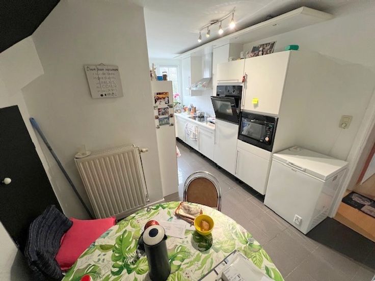 Sur l'axe principal menant à Namur centre, à l'entrée de Wépion, nous vous proposons un immeuble mixte comprenant un rez commercial de 180m² (ancienne boulangerie active pendant plus de 20 ans), un appartement 3 chambres de 100m² au 1er étage du commerce et un atelier/garage de 115m² sur l'arrière du bâtiment principal. L'appartement se compose d'un hall d'entrée, d'un living de 26m², d'une cuisine carrelée et équipée (meubles, taque, hotte, four, micro-ondes, lave-vaisselle et évier), de 3 chambres (15m² et 2 x 11m²), d'une salle de bain carrelée (bain, double évier) de 8m², d'un WC séparé et d'un grenier de 4m². Il est actuellement loué 550€/mois hors charges - loyer possible de 800€. Caves de 45m² en sous-sol. Plusieurs emplacements de parking en façade et sur l'arrière du bâtiment. Châssis double vitrage en PVC. Chauffage central au gaz de ville. PEB de classe E - 395 kWh/m².an. Matériel de boulangerie/pâtisserie complet compris dans le prix. Excellente situation pour tous types de commerces ou profession libérale. Document et prix informatifs et non contractuels.