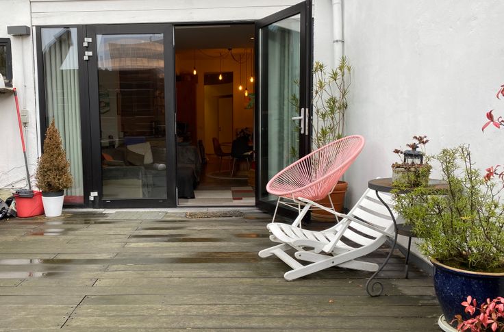 - Un grand salon avec coin bureau qui donne sur une spacieuse terrasse calme et sans vis-à-vis.