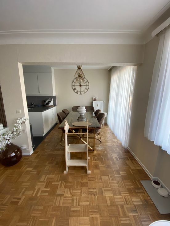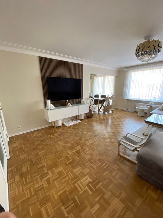 Nous vous proposons cet appartement très central et rénové, proche de nombreuses commodités (écoles, commerces, transports en commun..) L'appartement est situé au 4ème étage dans un immeuble avec ascenseur et comprend : hall d'entrée avec wc et vestiaire, spacieux et lumineux séjour (parquet), cuisine entièrement équipée avec coin petit-déjeuner et balcon, 2 chambres avec accès à la terrasse arrière, salle de bain (douche, lavabo intégré). L'appartement dispose également d'une cave. Atouts : double vitrage, porte blindée, économe en énergie et l'électricité est conforme. Aucun travaux à prévoir.