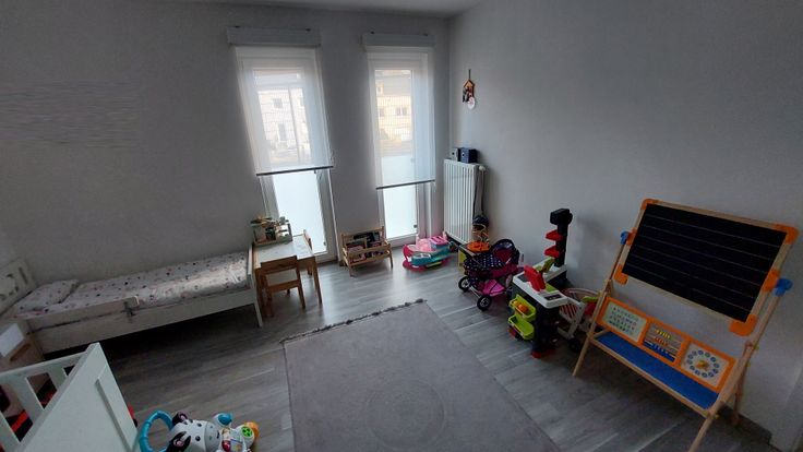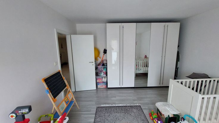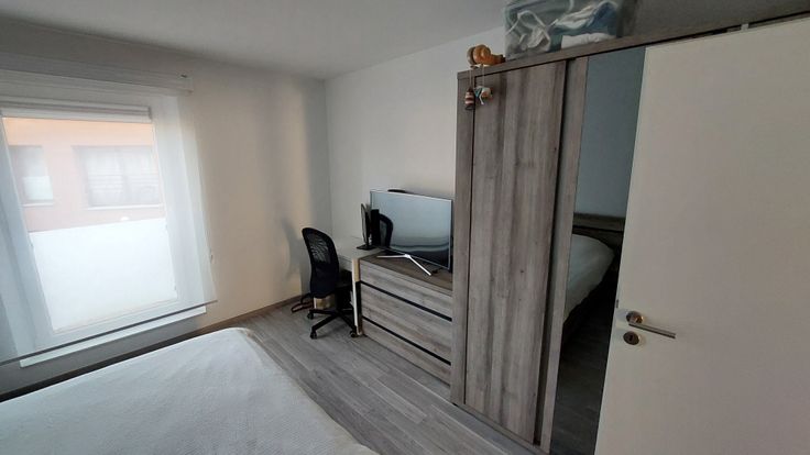 Deux chambres très spacieuses (17.5 m² et 14.20m²) peuvent chacune accueillir un bureau de travail. Une chambre est équipée d'une garde robes 5 portes. Toutes les fenêtres sont équipées de stores occultants combiné jour-nuit