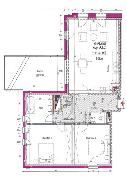 Le logement comprend un living spacieux de 38 m² bien éclairé équipé d'une cuisine tout confort avec une terrasse de 22 m² orientée au sud.