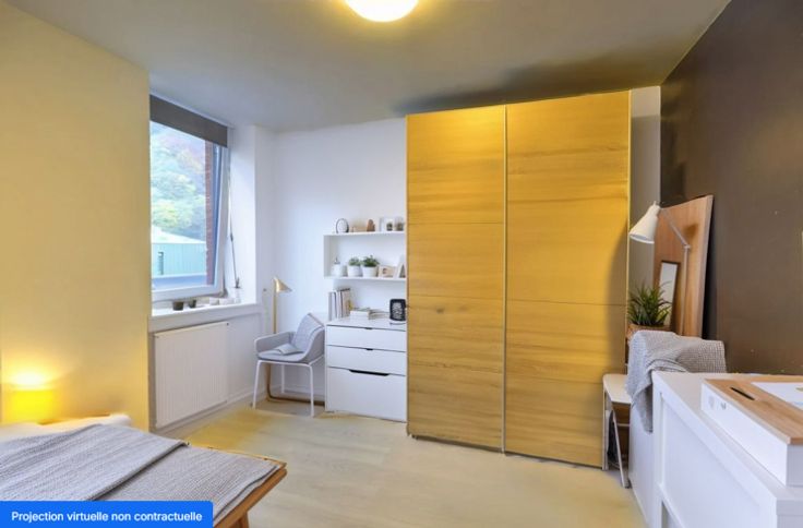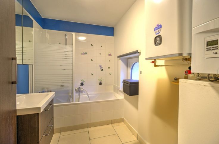 SITUE AU COEUR DE CHAUDFONTAINE, APPARTEMENT DEUX CHAMBRES AVEC TERRASSE ET EMPLACEMENT DE PARKING COUVERT - 2ème étage : un hall d'entrée de 4.5m², une toilette indépendante avec évier, un séjour avec cuisine ouverte de 35m² (évier, taques, hotte), une terrasse de 10m², un hall de nuit de 2m², deux chambres de 10m² - 13m², une salle de bain de 5m² (évier, baignoire/douche), un débarras avec coin buanderie - DIVERS : projections 3D non-contractuelles, appartement actuellement loué, en attente des renseignements du syndic, châssis PVC double vitrage, chaudière individuelle au gaz (condensation), compteurs séparés, ascenseur, parlophone, un garage de 35m² (partagé avec le premier étage), proximité immédiate des commodités, RCNI 1174€, description non-contractuelle communiquée à titre informatif.