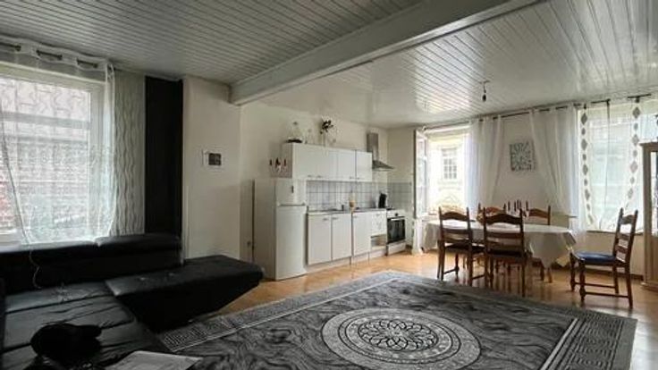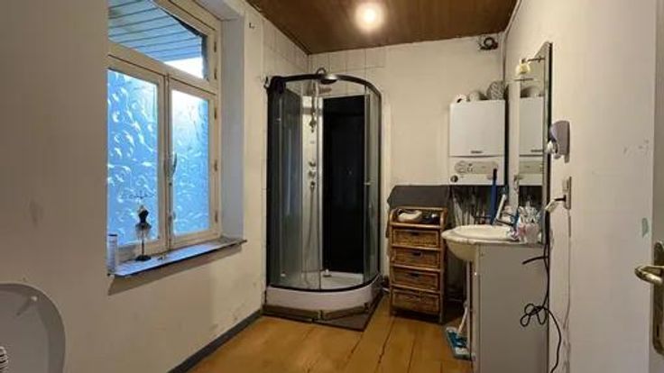Ce bien est vendu par internet à partir du 11/03/2025 jusqu'au 19/03/2025. Maison unifamiliale aménagée sur deux niveaux + hangar Au rez-de-chaussée, anciennement rez commerciale, comprend un hall d'entrée (12 m²) donnant accès, d'un côté, à un espace ouvert combinant séjour, cuisine, et salle à manger (35 m²), précédé d'un sas (5 m²). De l'autre côté, une chambre (15 m²) suivie d'une salle de bains (7 m²). L'étage se compose d'un hall (7 m²) menant à une salle de bains (7 m²), un espace de vie combinant cuisine, salon et salle à manger (35 m²) ainsi qu’à deux chambres (15 m² chacune) et un espace de rangement (7 m²) en enfilade. La propriété comprend également un hangar (198 m²), accessible depuis la servitude. Aspects techniques : - Fenêt uble vitrage et en bois à simple vitrage pour certaines. - Chauffage central avec chaudière à condensation. Commodités : - Gare ferroviaire à 100 m - A proximité du Quai du Halage - A proximité de zones commerciales Visites sur RDV : Mr CRIMINISI Nicola : 0492/78.48.18