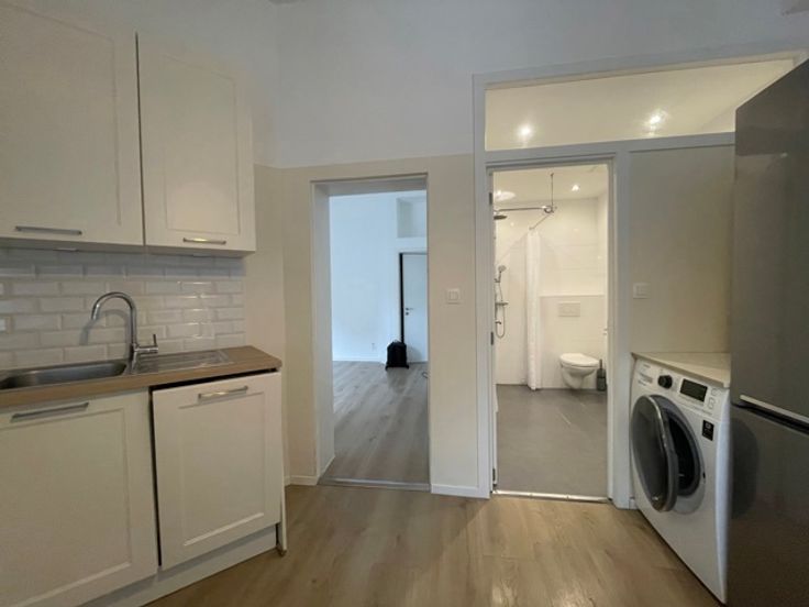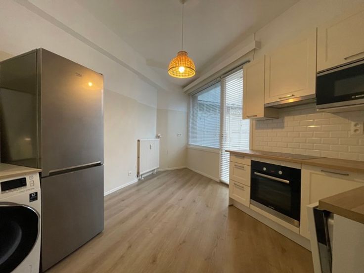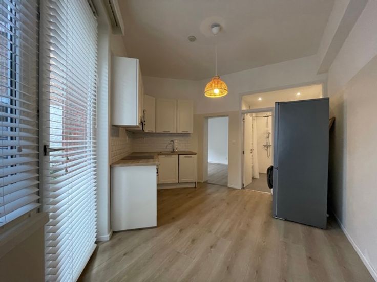 Louis Schmidt, kleine studio op -1, recent gerenoveerd, bestaande uit een woonkamer, een aparte uitgeruste keuken, wasmachine, badkamer met douche en toilet. Informatie en bezichtigingen: RESIDENCY 02 268 58 00.