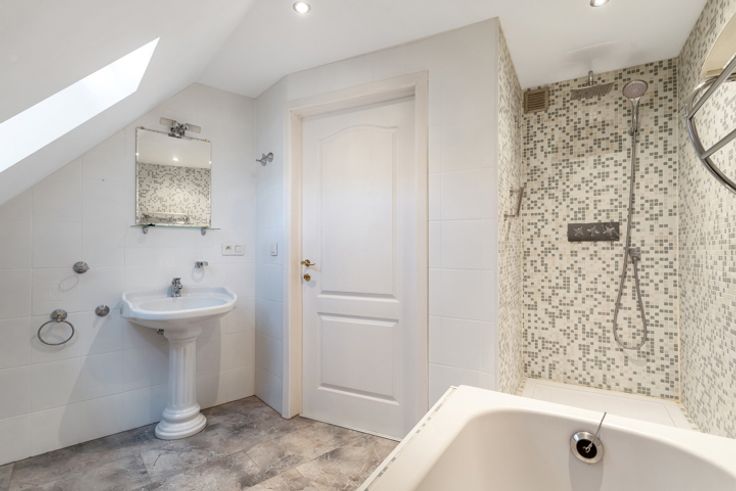 De bovenliggende woning is toegankelijk via zowel de zaak als een aparte ingang. De leefruimte baadt in natuurlijk licht en heeft toegang tot een aangenaam dakterras met een gunstige oriëntatie. Daarnaast is er een open keuken met alle voorzieningen. De bovenverdieping beschikt over 2 slaapkamers, een badkamer met wastafel, douche, bad en een apart toilet.