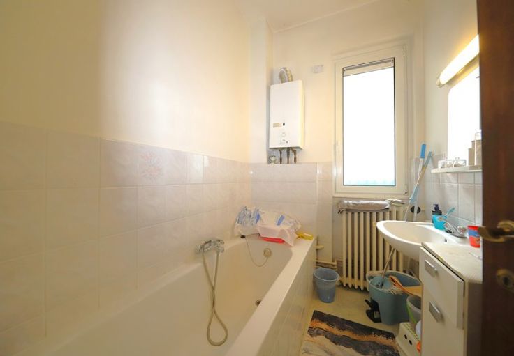 Gelegen in het hart van de gewilde wijk Heysel-Houba de Strooper, met alle voorzieningen binnen handbereik (winkels, openbaar vervoer zoals metro Houba-Brugman/Koning Boudewijn, tram, bus, snelwegtoegang, scholen, parken, Brugmann Ziekenhuis, enz.), bieden wij u dit appartement van ± 85 m² aan om te renoveren, gelegen in een kleine mede-eigendom zonder lift, op de 1ste verdieping. Het appartement is als volgt ingedeeld: een inkomhal met vestiaire, een niet-uitgeruste keuken 10 m², een woonkamer van 32 m² voorzien van massief parket voor een warme uitstraling, een nachthal met apart toilet, een badkamer, 2 slaapkamers voorzien van massief parket voor een warme uitstraling van respectievelijk 9 m² en 16 m², twee kelders en een garage. Extra kost garage: +29.000€. Het appartement is momenteel verhuurd. Opbrengst 975€ per maand. Lasten: +/- 150€ per maand (syndicus). Ramen : bouwjaar 2002.