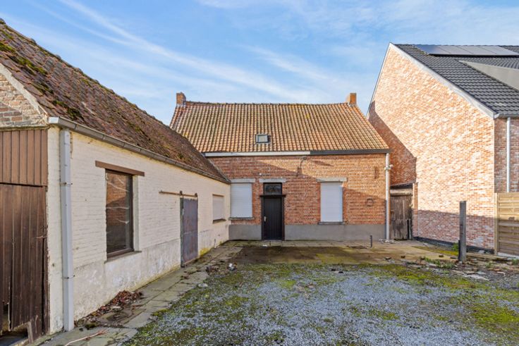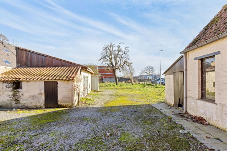Ruim perceel met af te breken woning en stalling, ideaal voor herontwikkeling. Er is reeds navraag gedaan bij de Dienst Omgeving over de mogelijkheid om twee eengezinswoningen te bouwen, met tuinbergingen en carports aan de achterzijde van het perceel. Het ontwerp omvat twee woningen van twee bouwlagen met een hellend dak. De kroonlijsthoogte bedraagt 6 meter, met een nokhoogte van 10,5 meter. De woning links heeft een gevelbreedte van 5,8 meter, terwijl de woning rechts 6 meter breed kan zijn. Er is een voorontwerp door een architect beschikbaar, maar de nieuwe eigenaar kan uiteraard kiezen om een eigen architect of aannemer in te schakelen. Geïnteresseerden kunnen contact opnemen voor meer informatie en bezichtiging.