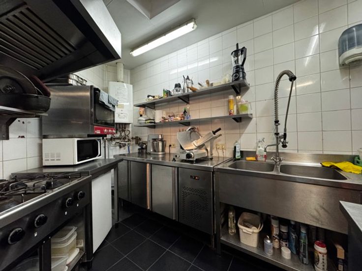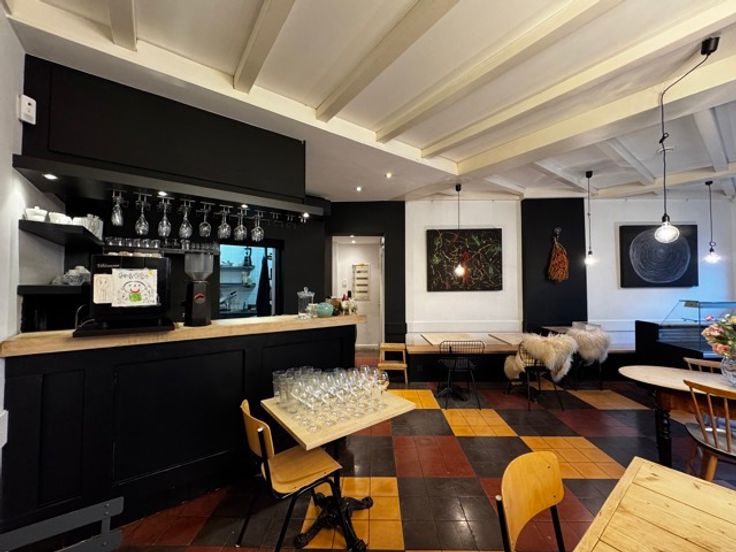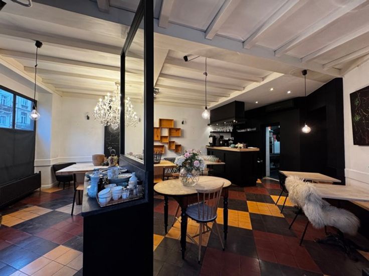 Composé d'une pièce principale de 52m2, un coin bar de 4m2, une cuisine munie de son équipement professionel de 15m2, des toilettes hommes/femmes et enfin une cave. Les meubles actuellement présents peuvent être rachetés - prix à discuter.