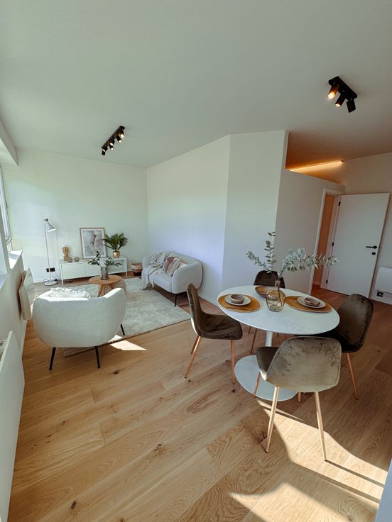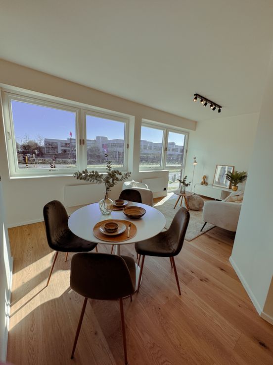 De grote vernieuwde ramen (hoogrendements 4-seizoensglas) zorgen voor veel lichtinval terwijl de parketvloer huiselijke warmte en gezelligheid uitstraalt.