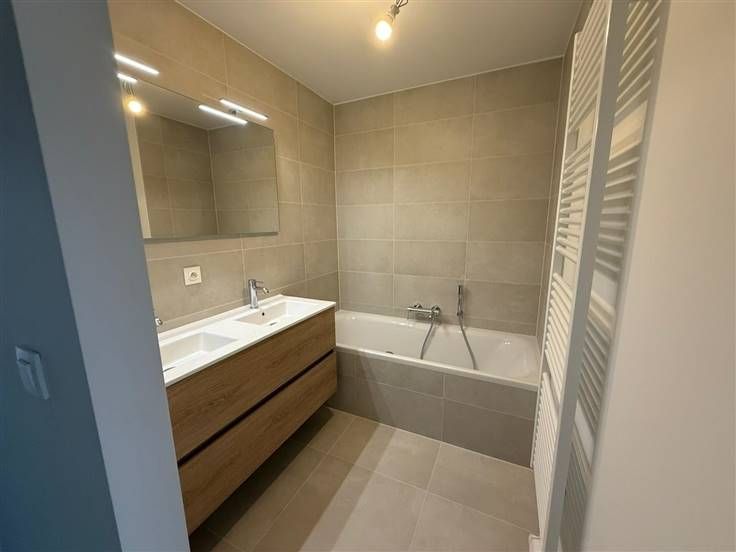 1ère occupation !!! UCCLE (Fort Jaco), dans une nouvelle construction, à proximité immédiate des commerces, des restaurants, du David Lloyd et de la forêt de Soignes, sublime appartement de 77m² + terrasse de 30m², comprenant: hall d'entrée, wc séparé, living, cuisine full équipée, hall de nuit, 1 chambre, salle de bain, un espace buanderie, porte blindée, cave privative. Parking auto en option (130€/mois), parking moto en option (65€/mois) et local vélos. L'appartement est équipé de rails, luminaires dans certaines pièces. Libre directement. BAIL SOCIETE OK! Pour conditions et visites: 02 344 88 84 / rent@tribel-immo.be / www.tribel-immo.be (PEB: B)