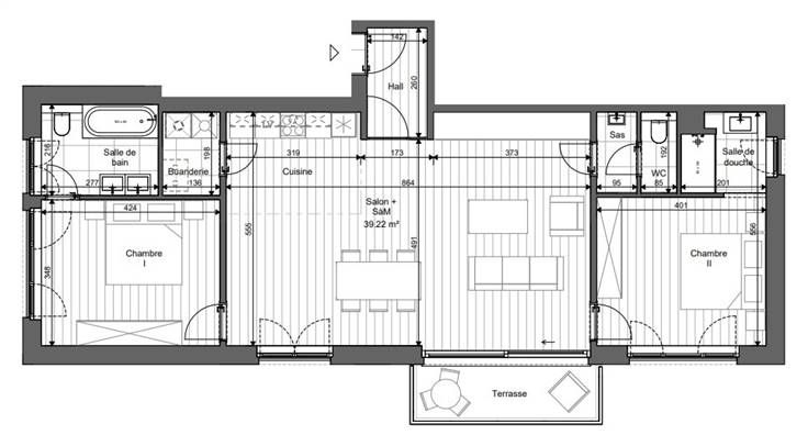 1ère occupation !!! UCCLE (Fort Jaco), dans une nouvelle construction, à proximité immédiate des commerces, des restaurants, du David Lloyd et de la forêt de Soignes, sublime appartement de 115m² + terrasse de 6,5m², comprenant: hall d'entrée, wc invités, living, cuisine full équipée, 2 chambres, sdb dont une avec un wc, sdd, espace buanderie, porte blindée, cave privative. Parking auto en option (130€/mois), parking moto en option (65€/mois) et local vélos. L'appartement est équipé de rails, luminaires dans certaines pièces. Libre directement. BAIL SOCIETE OK! Pour conditions et visites: 02 344 88 84 / rent@tribel-immo.be / www.tribel-immo.be (PEB: B)