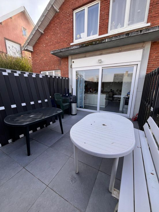 Grande baie vitrée donnant sur la terrasse.