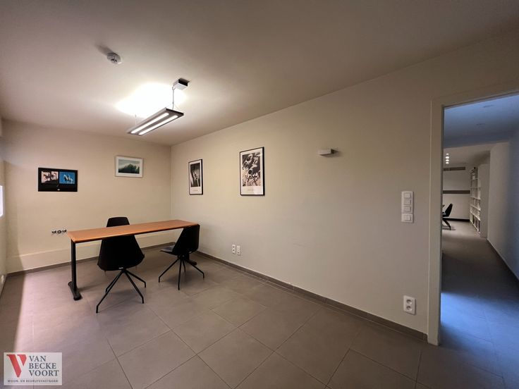 Het gelijkvloers is actueel opgesplitst in verschillende praktijk-/kantoorruimtes: bureau vooraan met aparte ingang 26m² - onthaal en wachtzaal 36m² - berging - toilet - keuken 15m² - bureau achteraan 35m² en een kelder 45m² in de ondergrond.