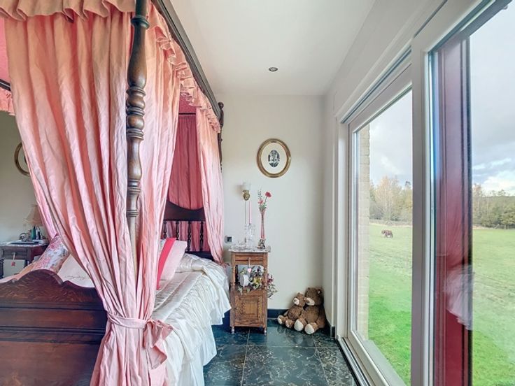 Offre àpd 995 000- € Propriété équestre type Hacienda sur les hauts plateaux de Harzé/Aywaille. Complexe unique pour le dressage, l'élevage ainsi que l'activité locative et pension pour chevaux. En partie exploitation: 9 box dont 5 poulinières sur élastomère et bacs alimentaires. 16 box à parachever et une surface couverte de 76 m² pour stockage. Plans et permis pour l'implantation d'un manège de 50X20m. Deux ronds de longe, carrière, douches et bancs solaires, l'ensemble alimenté en permanence par une réserve d'eau de 75 000L, ainsi qu'un tracker solaire de 14 000 KW de production. Cheptel et machines en acquisition possible. Une superficie boisée de +/- 3500m², permettant l'implantation de TINY HOUSE afin d'y accueillir les propriétaires de chevaux désireux passer un W-E sur place. La villa: Construction récente, lux et confort: grandes réceptions, cuisine full équipée, 3 chambres dont une suite. Chauffage de sol. Grandes terrasses. 2 garages /6 véhicules. INFO & VISITE : 0475/49.22.20.