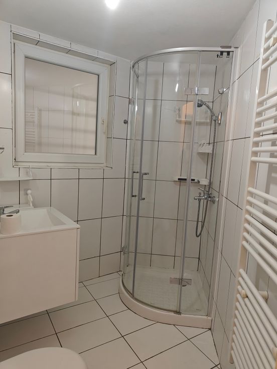 Séjour avec cuisine US équipée, 1 chambre, salle de douche, espace séparé pour machine à laver, petit balcon. Cave. PEB D. Finitions soignées. Provision pour charges communes : 10€. Libre immédiatement
