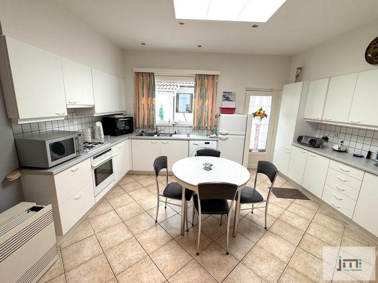 Bij binnenkomst via de inkomhal krijgt u meteen toegang tot de verschillende leefruimtes. De gezellige living met gashaard en de grote keuken vormen het hart van de woning. Dankzij de ramen naar de binnenkoer genieten we in het huis van veel natuurlijk licht.