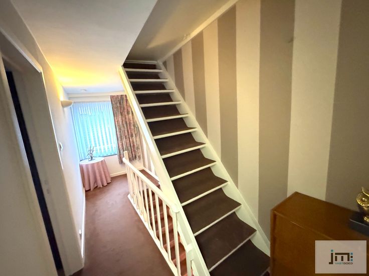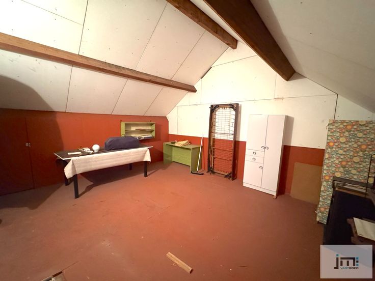 De eerste verdieping herbergt twee slaapkamers en een vernieuwde badkamer die is uitgerust met een douche, enkele lavabo en een toilet. Via de trap op de eerste verdieping bereiken we de zolderruimte, die perfect kan dienen als grote opbergruimte of als hobbyruimte, maar ook kan ingericht worden als derde slaapkamer.