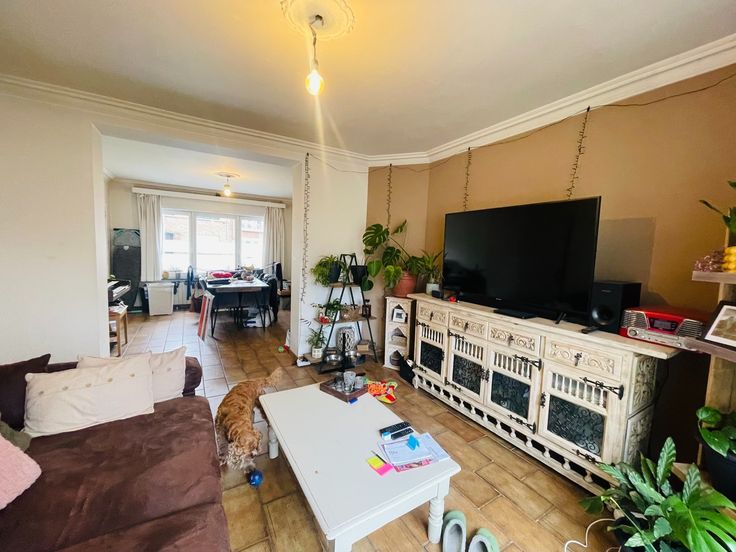 Vooraan Sint-Pieters, supergoede ligging vlakbij  Scheepdalebrug,ENERGIEZUINIG gezellig woonhuis met  GROTE tuin en GARAGE van circa 60 m² ! Omvat: inkom, gezellige living bestaande uit eetplaats en zitplaats , met houtkachel, ingerichte keuken (elektrokeramische fornuis,,heteluchtoven, vaatwas,frigo,diepvries,ingebouwde frituur Miele), badkamer met ligbad, lavabo, toilet, aansluiting wasmachine en droogkast. Groot zonneterras, zalige grote tuin achteraan uitgevend in garage van 60m² in de Sint-Pietersstatiedreef. 1é Verd:  2 grote slaapkamers , 1 van 16m² en 1 van 18 m² met zicht op de tuin, overal plankenvloeren !Perfect geïsoleerde zolder waar nog een slaapkamer mogelijk is.Ramen in perfecte staat , dubbel glas + rolluiken, centrale verwarming op aardgas en 9 ZONNEPANELEN ! Renovatieplicht: nee