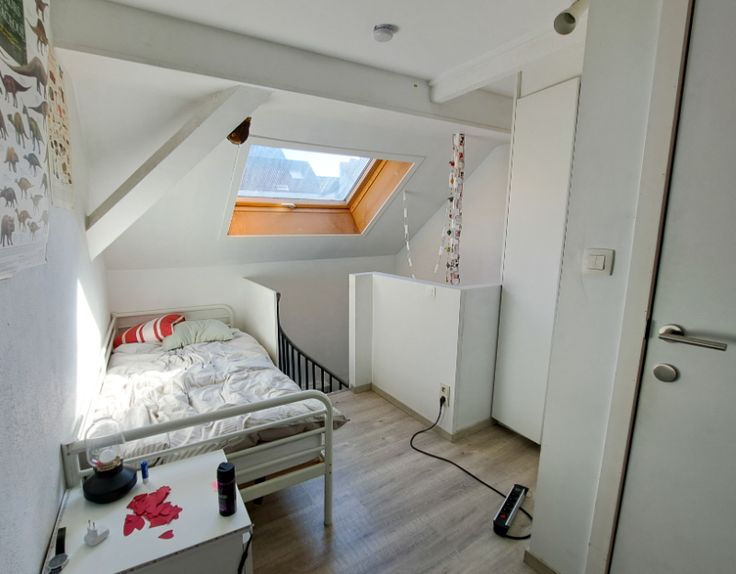 Gemeubelde duplex studentenkamer gelegen in de Sint-Crispijnstraat 4. Gelegen in centrum Gent, op korte afstand van Campus Sint-Lucas. De kamer heeft een eigen badkamer met douche, lavabo en toilet. Er is een bed, bureau, stoel, boekenkast en kleerkast aanwezig. In het gebouw is er een gemeenschappelijke keuken met eetplaats, 2 toiletten en een douche. Te huur vanaf nu tem 30/08/2025 (huurcontract verlengbaar per jaar). DE KAMER IS ENKEL VOOR STUDENTEN, DOMICILIE IS NIET MOGELIJK.